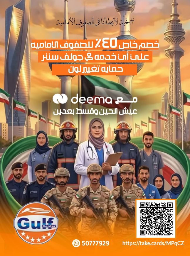 5 سارية في جميع فروع Gulf Center في الكويت والخليج ومصر ضمن شبكة الخدمة الموحدة